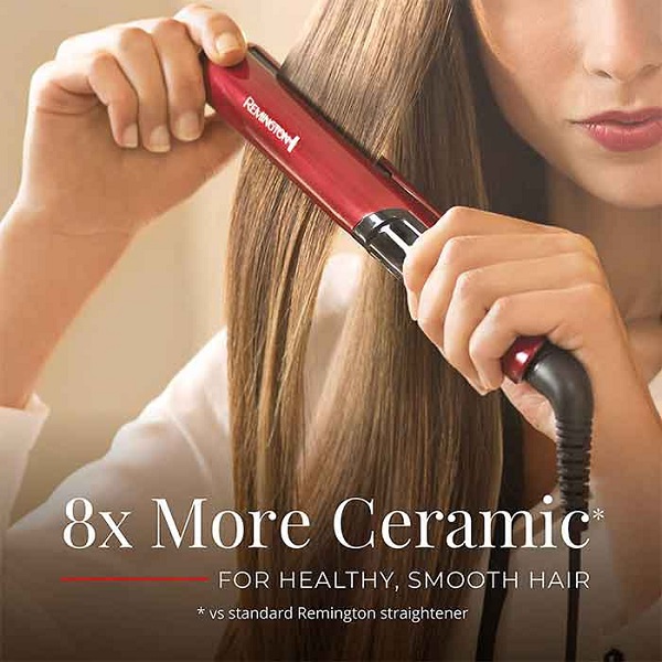 اتو مو سرامیکی رمینگتون 9600 دارای صفحاتی از جنس سرامیک پیشرفته است. این محصول دارای نمایشگر دیجیتال و عملکرد حافظه می باشد. به این معنی که آخرین درجه حرارت را در حافظه خود نگه می دارد و استفاده های بعدی دیگر نیاز به تنظیم مجدد آن نیست. رنگ قرمز و طراحی زیبای اتو مو سرامیکی رمینگتون مدل S-9600 و صفحات کاربردی با لبه های گرد نظر مصرف کننده را به خود جلب می کند.