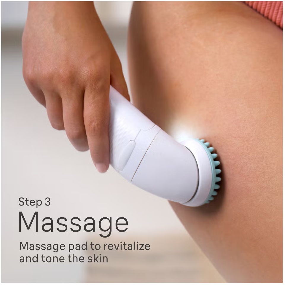 کلاه غلتکی ماساژ به کاهش احساس درد کمک میکند. این دستگاه با خاصیت ضدآب جهت رفع موهای زائد قابل استفاده به صورت خشک و مرطوب است. برای درد کمتر و راحتی بیشتر، به آرامی در حمام یا زیر دوش اپیلاسیون کنید.