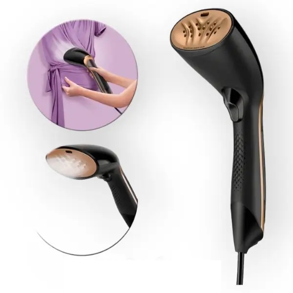 بدنه پلاستیکی مقاوم با ترکیب رنگ مشکی و طلایی، ظاهری شیک دارد. طراحی ارگونومیک و جمع‌وجور، حمل و استفاده در سفر را آسان می‌کند. این بخارگر نیازی به میز اتو ندارد و برای لباس‌های آویزان ایده‌آل است.