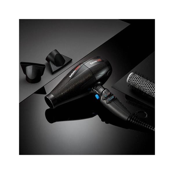 سشوار بابیلیس پرو مدل BAB6990IE از موتور AC با توان 2600 وات بهره می‌بره که برای مصارف حرفه‌ای در سالن‌ها مناسبه. فناوری تولید یون، با آزادسازی میلیون‌ها یون منفی، الکتریسیته ساکن رو خنثی می‌کنه و موها رو صاف و بدون وز نگه می‌داره. المنت سرامیکی گرما رو یکنواخت پخش می‌کنه و از آسیب حرارتی جلوگیری می‌نماید. دارای شش حالت تنظیم (سه دما: سرد، گرم، داغ و سه سرعت) برای انعطاف‌پذیری در حالت‌دهی انواع موهاست. سرعت باد تا 152 کیلومتر بر ساعت و جریان هوای 75 مترمکعب در ساعت، خشک کردن سریع رو تضمین می‌کنه. شامل دو نازل باریک (6×75 و 6×90 میلی‌متر) و دیفیوزر برای براشینگ و حجم‌دهی موهای فره. سیم 2.7 متری با چرخش 360 درجه، مانور رو آسون می‌کنه.