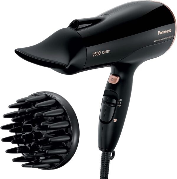 سشوار پاناسونیک مدل EH-NE84 از موتور 2500 واتی بهره می‌برد که جریان هوای قوی را برای خشک کردن سریع ایجاد می‌کند. فناوری تولید یون، میلیون‌ها یون منفی تولید می‌کند و مولکول‌های آب را می‌شکند تا موها سریع‌تر خشک شوند. این فناوری نرمی و درخشندگی مو را افزایش می‌دهد. دستگاه دو سرعت و سه حالت دمایی (سرد، ملایم، گرم) ارائه می‌دهد. سری متمرکزکننده، حالت‌دهی دقیق را تضمین می‌کند.