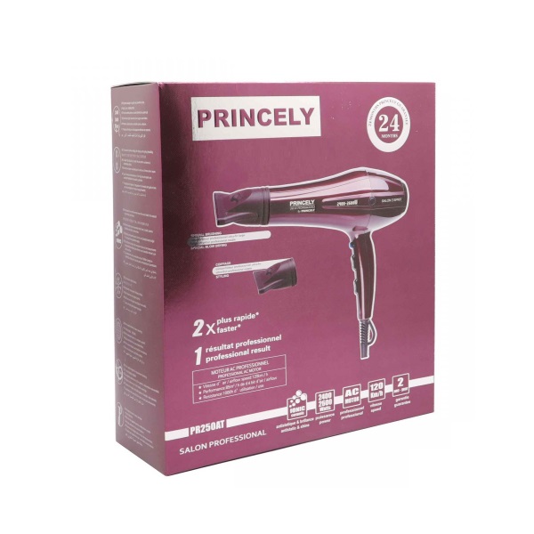 سشوار پرینسلی مدل PR250AT یکی از محصولات حرفه‌ای و پرقدرت برند پرینسلی است که برای استفاده خانگی و حرفه‌ای به ویژه در آرایشگاه‌ها طراحی شده است.