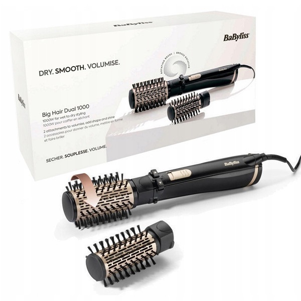 سشوار چرخشی بابیلیس مدل AS962E از موتور DC با توان 1000 وات بهره می‌بره که برای مصارف خانگی مناسبه. دارای دو سری برس چرخشی (42 و 50 میلی‌متر) با قابلیت چرخش دوطرفه (چپ و راست) برای ایجاد فرهای متنوع و حجم‌دهی به موهاست. فناوری تولید یون، با آزادسازی یون‌های منفی، از وز شدن مو جلوگیری می‌کنه و درخشندگی طبیعی ایجاد می‌نماید. المنت سرامیکی گرما رو یکنواخت پخش می‌کنه و از آسیب به موها پیشگیری می‌کنه. دارای دو حالت دما (گرم و داغ) و دو حالت سرعت، به‌همراه باد سرد برای تثبیت حالت موئه. سیم 2.2 متری با چرخش 360 درجه، مانور رو آسون می‌کنه. فیلتر هوای جداشونده، تمیز کردن رو ساده می‌کنه.