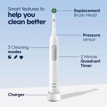 این مسواک هر ۳۰ ثانیه یک سیگنال ارسال می‌کند تا به شما یادآوری کند که ناحیه مسواک زدن خود را تغییر دهید. فقط مسواک را در اطراف دهان خود حرکت دهید و برس گرد منحصر به فرد اورال-بی بقیه کار را انجام می‌دهد. این مسواک تا ۱۰۰٪ پلاک بیشتری نسبت به مسواک دستی معمولی از بین می‌برد و لثه‌های سالم‌تری به شما می‌دهد.